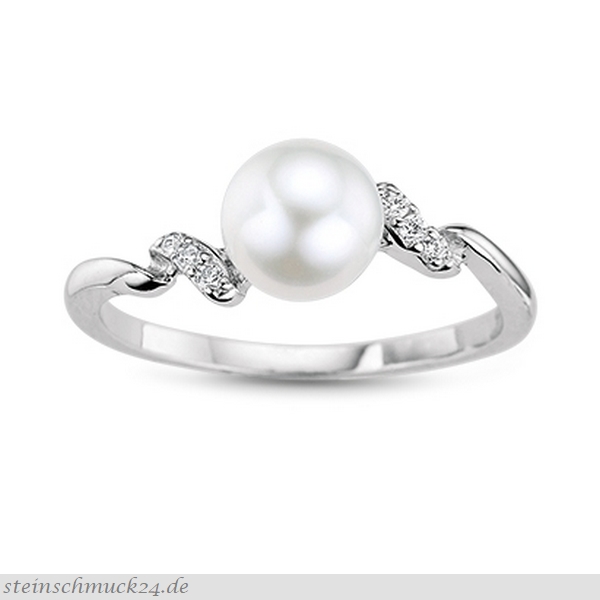 PEZI054-20407RIS / Ring (925er Sterlingsilber rhodiniert), Besatz (Süßwasser-Zuchtperle 6.5 mm, Zirkonia neutral), Schiene (1.75 mm breit, poliert), Ringgröße (58 mm Umfang) / 54.- €uro